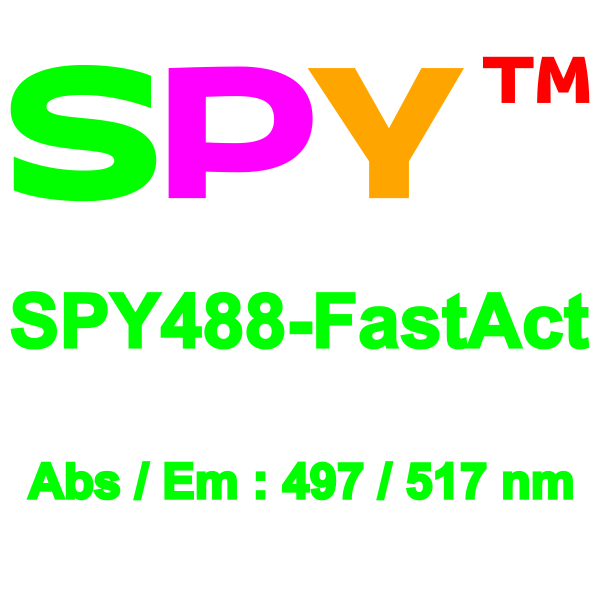SPY488-FastAct™ is a bright, green, fluorogenic & non-toxic F-actin stain based on our SPY™ dyes series. Its optimized structure allows to label F-actin in live cells with high specificity and low background. The unique and unmatched feature of SPY488-FastAct™ is its ability to label very dynamic actin, like LifeAct™** but the probe does not require any genetic manipulation, transfection or overexpression of fluorescent proteins. SPY488-FastAct™ is based on a bright, photostable & green SPY™ fluorophore which is superior to fluorescent proteins like GFP.